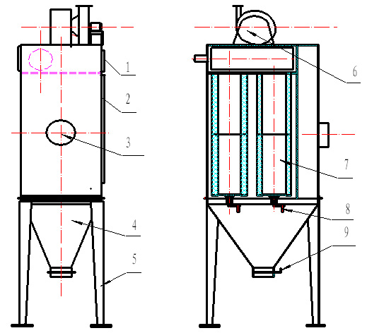 濾筒除塵器是一種比較先進(jìn)的過(guò)濾設(shè)備,優(yōu)點(diǎn)是除塵效率高,設(shè)備體積小,過(guò)濾面積大,過(guò)濾風(fēng)速低,噪音低等多種優(yōu)點(diǎn).被過(guò)濾粉塵僅停留在濾料超細(xì)纖維層的外表,所以大大減少了過(guò)濾阻力,節(jié)省耗電30%以上,節(jié)能效果顯著,并且清灰十分徹底.同時(shí)也解決了超細(xì)粉塵,纖維性粉
