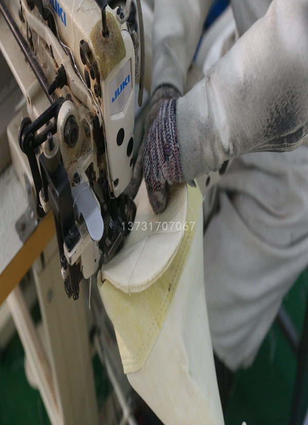 除塵濾袋縫制,要據(jù)除塵布袋袋口直徑、長(zhǎng)度不同,合理裁剪針刺氈濾料,袋口袋底領(lǐng)做加強(qiáng)保護(hù)層處理,濾袋專用三針六線縫紉機(jī)或?yàn)V袋自動(dòng)縫紉機(jī)集合高強(qiáng)度耐腐蝕三股縫紉線精密成袋。