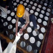 近日,我公司接到山西太水泥廠窯尾除塵器更換除塵布袋項(xiàng)目,此次更換的布袋為高溫覆膜氟美斯布袋,在布袋的安裝過(guò)程中要注意布袋的保護(hù),不可為趕緊工期不按要求安裝,防止覆膜在安裝過(guò)程中損壞。安裝完畢后要進(jìn)入除塵器底部觀察布袋的底部是否充實(shí),防止漏裝袋籠的下半 -